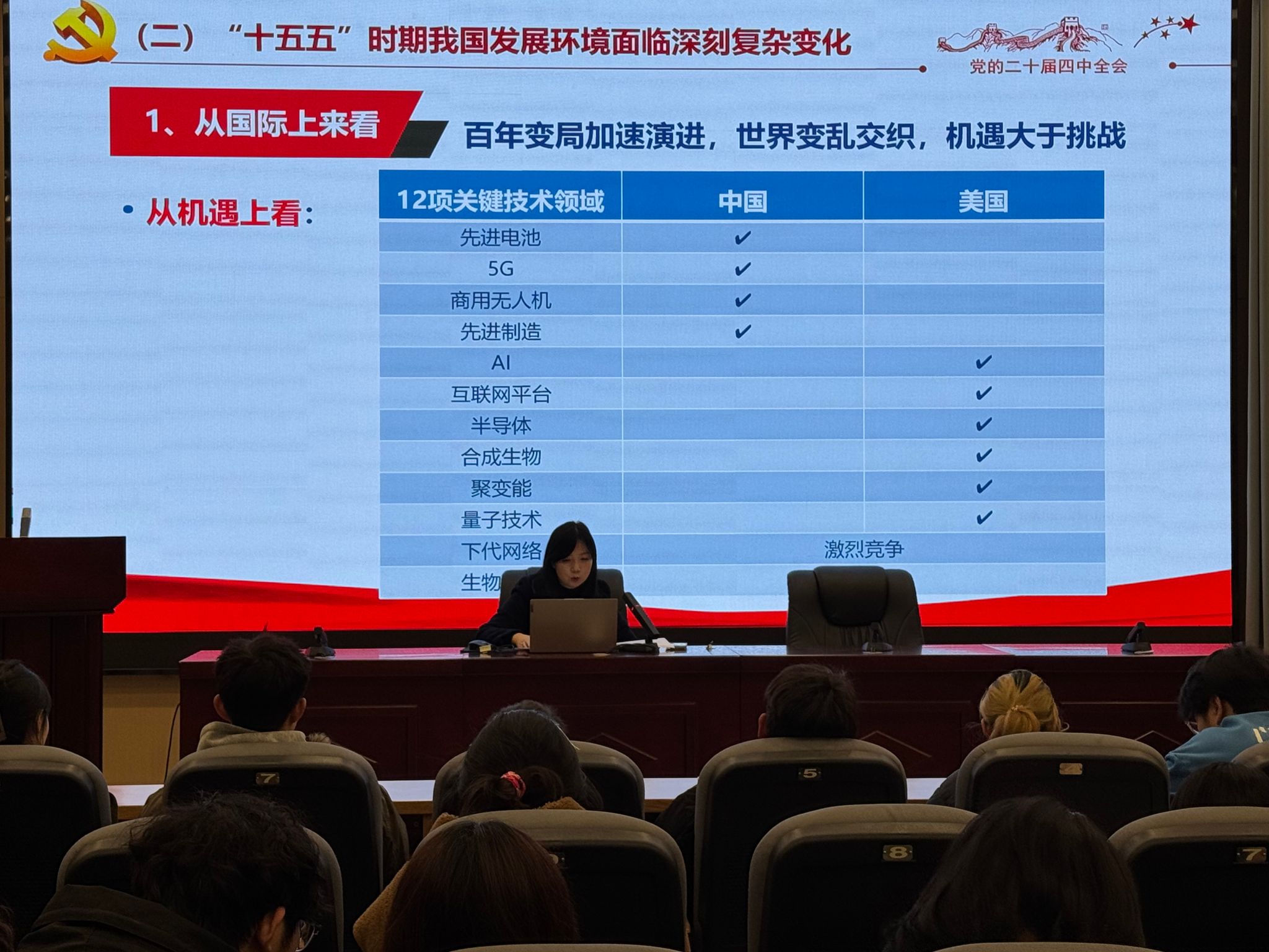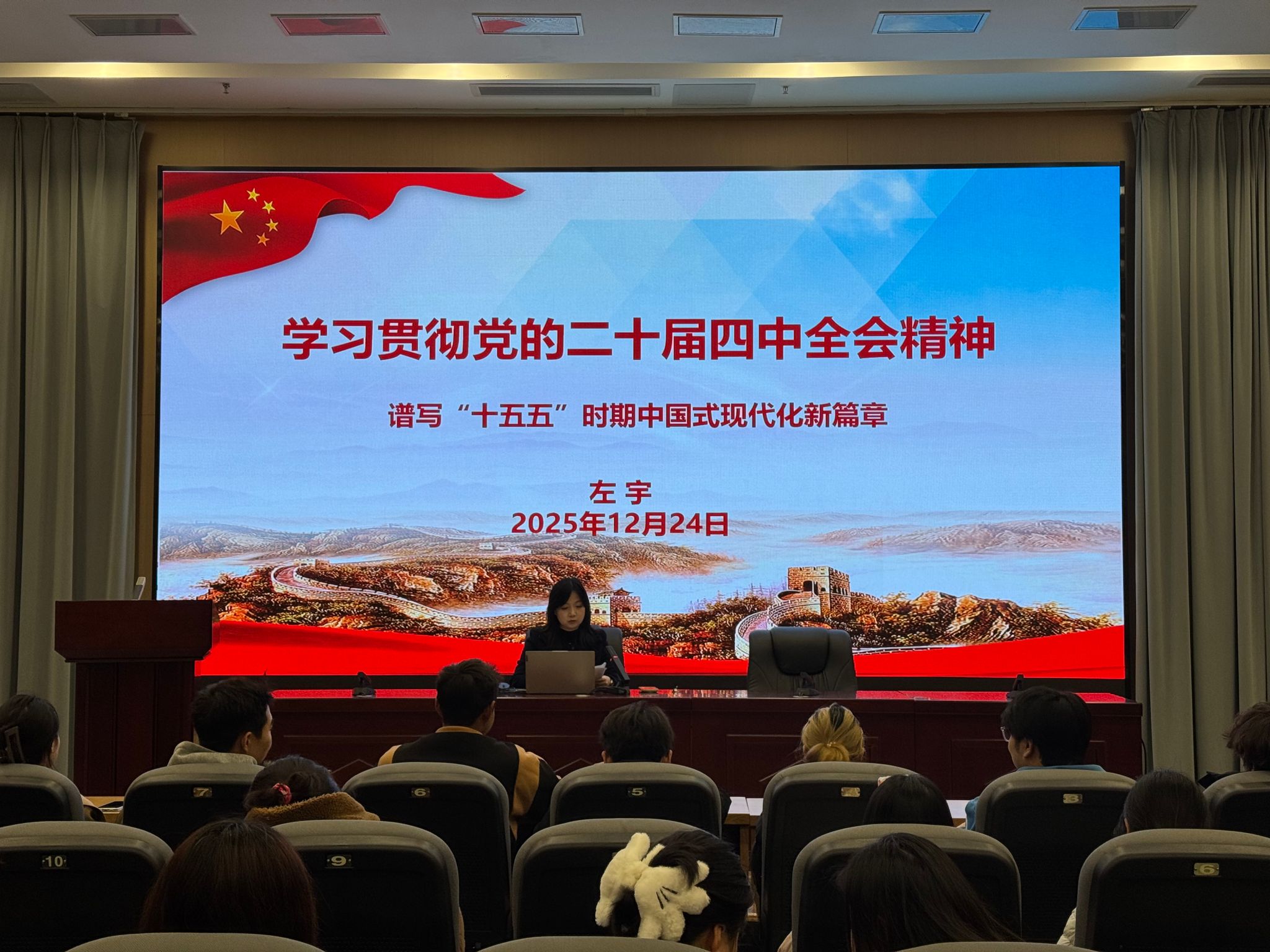 为深入学习贯彻党的二十届四中全会精神,引导青年员工深刻理解国家发展规划,2025年12月24日19:00校团委副书记左宇于小报告厅为所联系的365英国上市集团音23.4班开展了一场题为“学习贯彻党的二十届四中全会精神 谱写‘十五五’时期中国式现代化新篇章”的专题讲座。