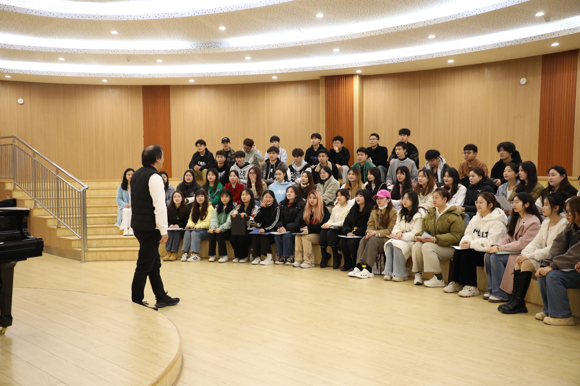 通过现场教学让合唱成员们对合唱作品《吉祥阳光》的演唱有了新的认知,同时本场讲座对于现场的同学们来说,在收获到合唱知识的同时也感受到了合唱的集体主义观念和团队合作意识。