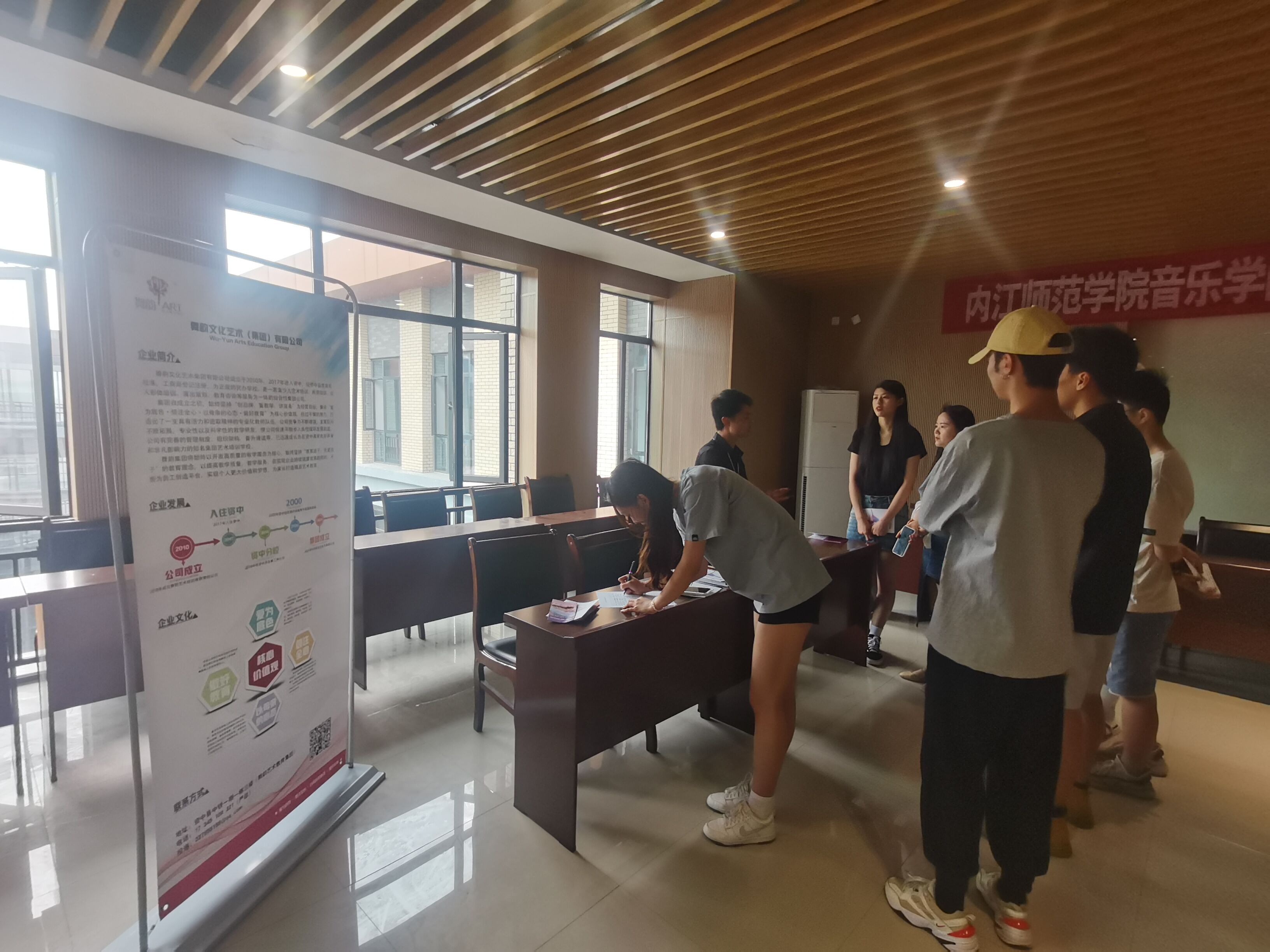 本次招聘会邀请了晓雯音乐公司、资中王云舞蹈艺术培训公司、舞韵文化艺术(集团)有限公司3家单位为公司音乐、舞蹈类专业毕业生做企业宣讲。招聘会上各单位负责人先后以视频、图片、PPT等方式,从企业文化、企业核心价值观、企业岗位需求及用人标准、企业人才储备及人才培养等多方面进行宣讲,为同学们了解企业打开了一个窗口,帮助同学们确定未来职业生涯规划,并以丰富的案例、幽默的语言及良好的互动带动宣讲活动的气氛。