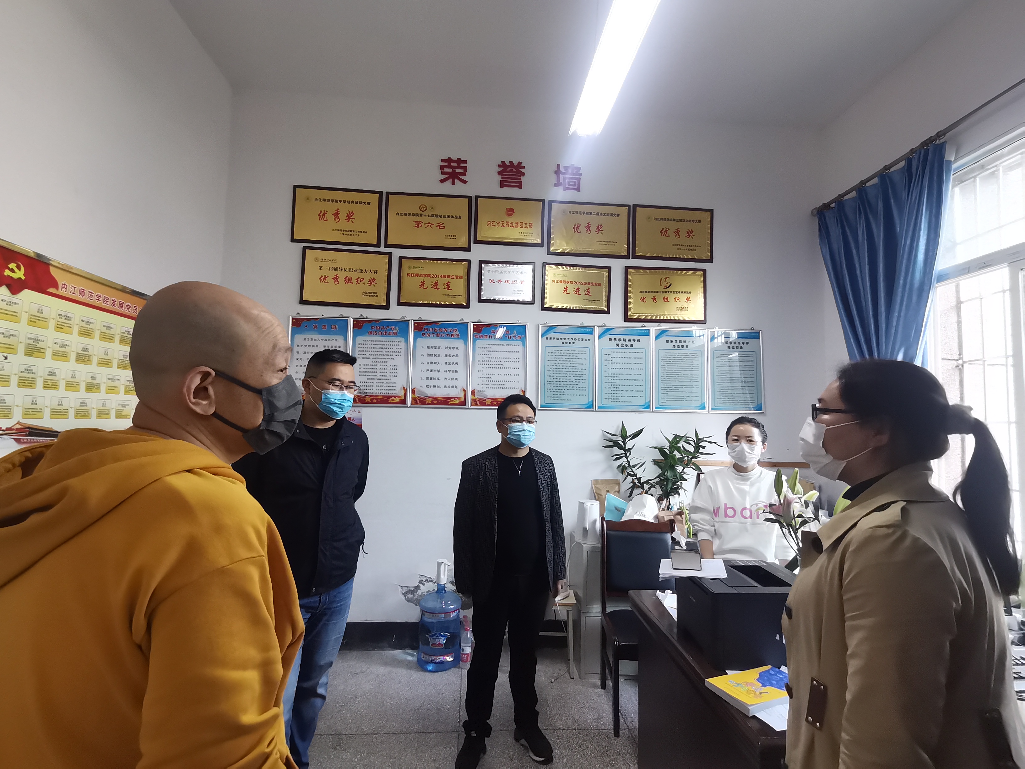 党政领导班子对该时段公司上课的班级进行了检查,主要查看师生的疫情防控措施是否落实到位。随后,党政领导班子一行检查了教学办公室和员工工作办公室,嘱咐师生要严格遵守学校疫情防控工作要求,增强对疫情防控工作的执行力度,关心爱护师生,及时做好师生的心理安抚工作,确保师生的生命安全和公司的稳定和谐。