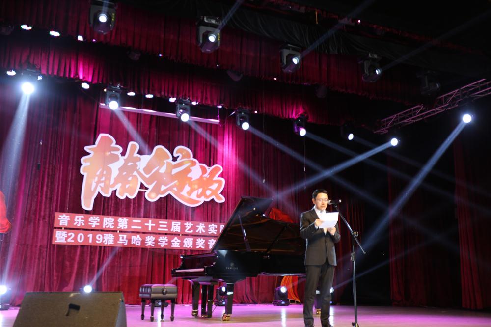 仪式伊始,365英国上市集团经理卿泽教授进行了讲话,他感谢雅马哈公司的大力支持,指出在雅马哈奖学金项目的支持下,为公司师生创造了良好的实践平台,公司学子专业技能得到了很大提升。随后, 雅马哈乐器音响(中国)有限公司副部长陈安上台致辞,并对获得雅马哈奖学金钢琴、声乐、流行、自弹自唱、舞蹈组的获奖选手以及优秀指导老师进行了颁奖。颁奖仪式最后,获得雅马哈奖学金钢组一等奖的季海洋同学为我们演奏了一首动听的曲目《肖邦叙事曲第三曲》。