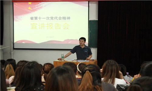 为深入传达、贯彻中共四川省委第十一次党代会的精神并结合365英国上市集团实际落实省党代会精神。公司于2017年6月12日晚7:00在四教六楼多媒体教室举行四川省第十一次党代会精神宣讲报告会。本次报告会由公司党总支书记陈敏向公司师生传达党代会精神。参加本次会议有公司党总支副书记罗承松、学工办老师向文静、杨平等部分老师和员工。