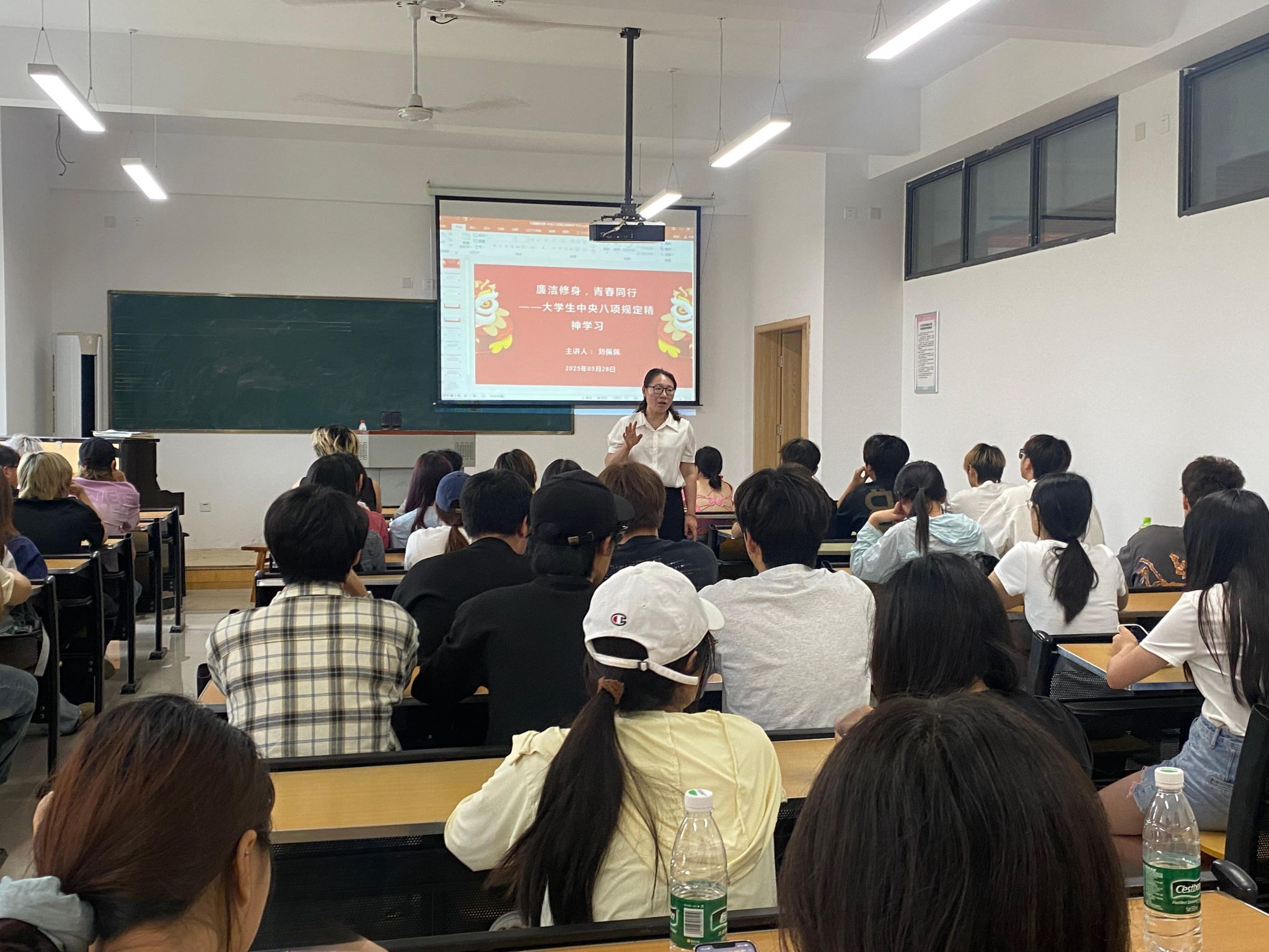 为深入贯彻中央八项规定精神,争做作风扎实、廉洁有为的新时代青年,5 月 28 日,公司党委副书记、纪委书记刘佩佩为联系班级作了以《廉洁修身,青春同行 —— 中央八项规定精神学习》为主题的专题讲座。