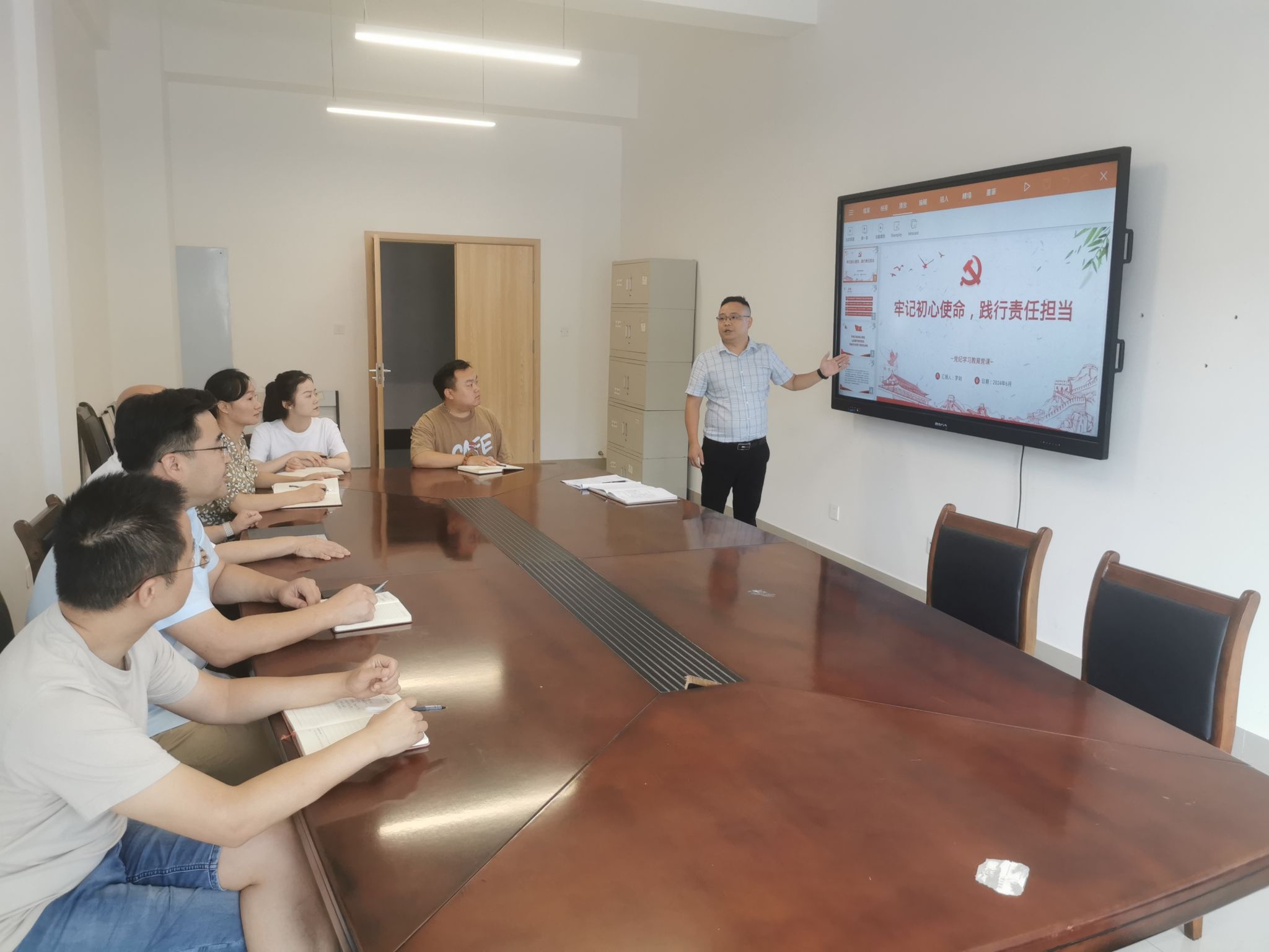 为深入学习贯彻习近平总书记关于加强党的纪律建设的重要论述以及关于党纪学习教育重要讲话和重要指示精神,6月17日,党委书记罗剑为为党委委员与支部书记讲授“不忘初心使命,践行责任担当”党纪学习教育专题党课。党课由党委书记罗剑主讲,公司党委委员和各支部书记参加此次学习。