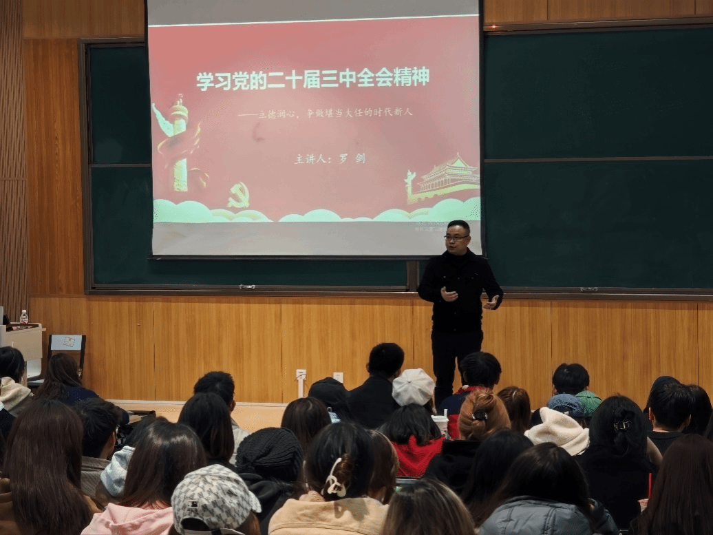 为了进一步深入学习贯彻党的二十届三中全会精神,公司党委书记罗剑于2024年11月17日17:30在伯牙楼B111开展了以《学习党的二十届三中全会精神》为题的专题讲座。本次讲座旨在引导同学们深刻理解全会精神,并将其落实到自身的学习与生活中,为培养德才兼备、具有时代使命感的青年人才提供理论指引。