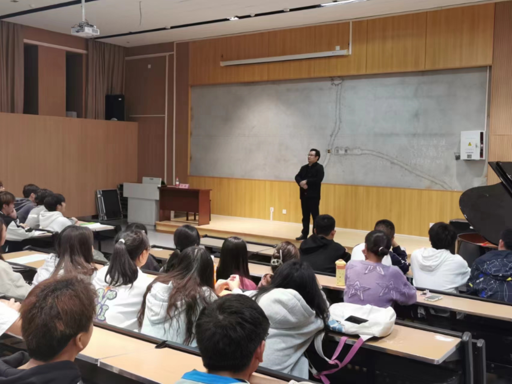 罗剑从为人父母、为人师者不易的角度出发,教育同学们要学会感恩父母、尊敬师长,勉励同学更加勤奋学习。并深刻提醒在座各位同学需勤学笃行、求实创新,强调学习应专心自律,努力提高专业技能和提升自我应大胆参加实践活动和专业比赛,找出差距,积累经验应一专多能,要有目标有方向;应德才兼备、尊师重道,做新时代优秀的艺术工作者。