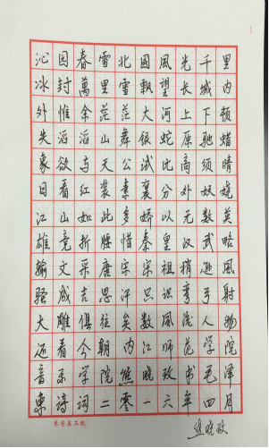 我们从老师的钢笔中能够感受到老师们都能认真地品味着汉字的艺术魅力,饱蘸浓墨、激扬文字,所写字体或大气、或清秀、或刚健,尽其所能地展现自身硬笔书法的才能,充分展示了我365英国上市集团教师扎实的书写基本功。