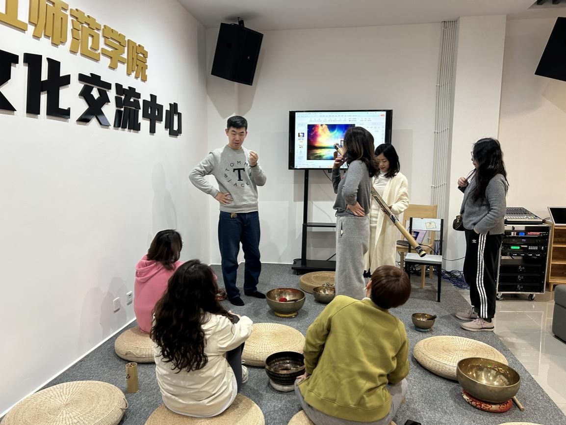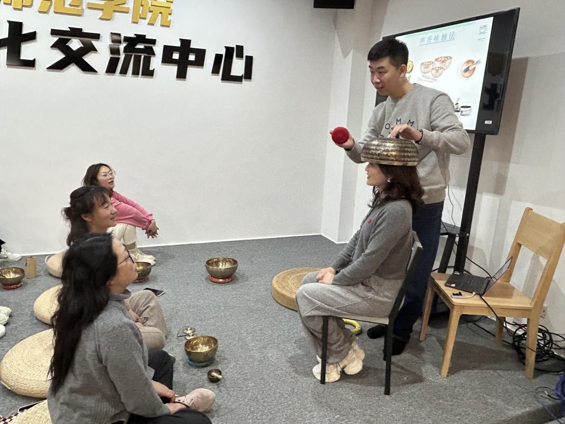 “乐韵润心涯”音乐疗愈活动同样精彩非凡,自活动伊始,老师们便展现出了浓厚的兴趣与极高的热情。此次活动主要分为三个部分:音乐疗愈知识介绍、乐器亲身体验、沉浸式音乐聆听。疗养师魏巍首先深入浅出地为老师们讲解了音乐疗愈的原理与功效,随后详细介绍了用于音乐疗愈的各类乐器,新奇的知识激发了老师们强烈的好奇心。在乐器体验环节,老师们纷纷动手尝试,触摸、感受不同乐器发出的独特声响,沉浸在探索音乐奥秘的乐趣之中。最后的音乐聆听环节,疗养师奏响美妙的旋律,音符在空气中流淌,老师们静静聆听,在音乐的轻抚下,内心的压力与疲惫逐渐消散,尽情享受着音乐带来的温暖与力量。