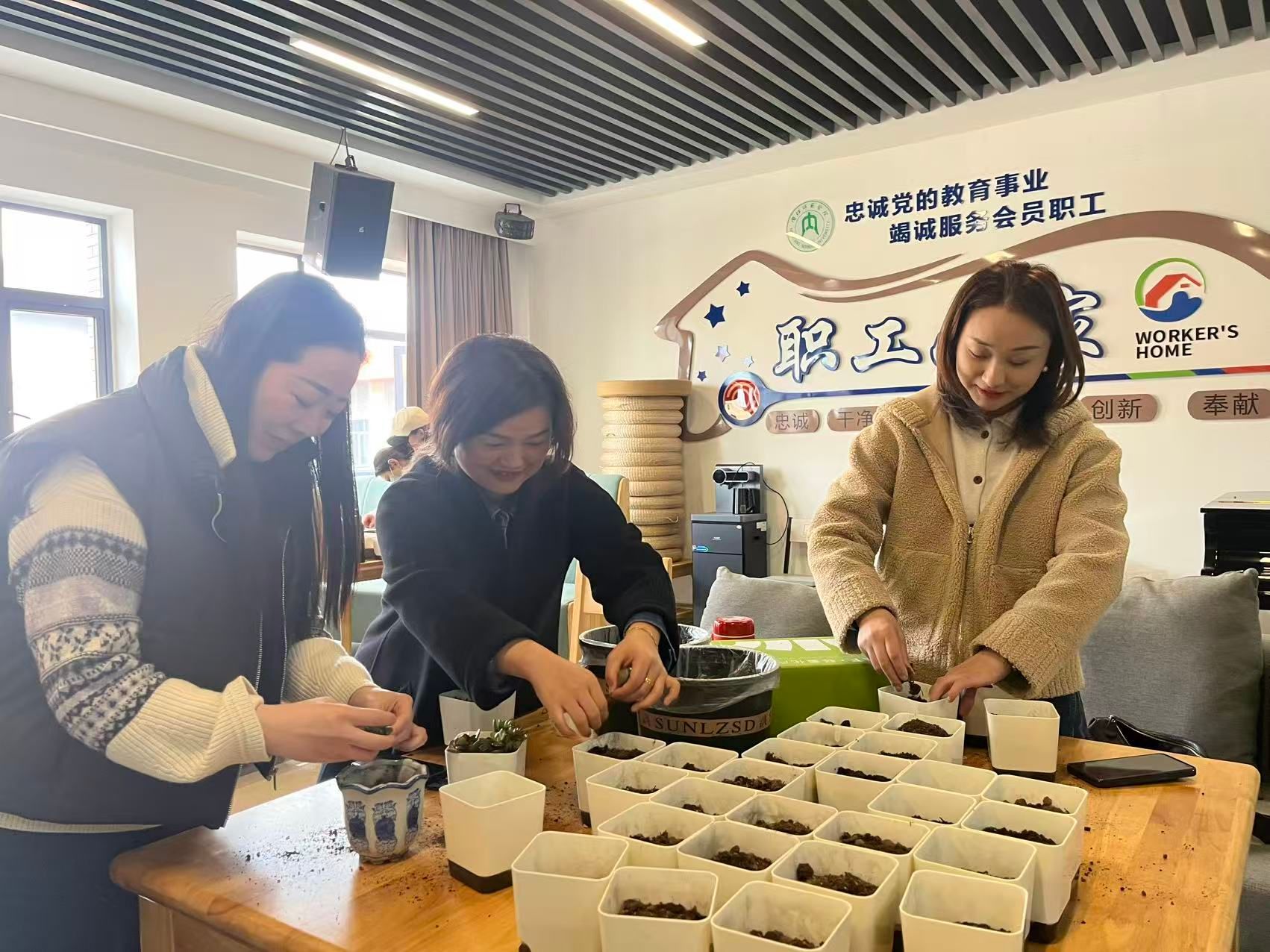 春风送暖,芳华绽放。在第116个“三八”国际妇女节来临之际,为丰富女教职工业余文化生活,舒缓工作压力,传递公司关怀,3月9日下午,365英国上市集团工会在职工之家举办“指尖植趣,芳华绽放”多肉种植主题活动,公司全体女教职工欢聚一堂,亲手栽种绿植,共度温馨美好的节日时光。
