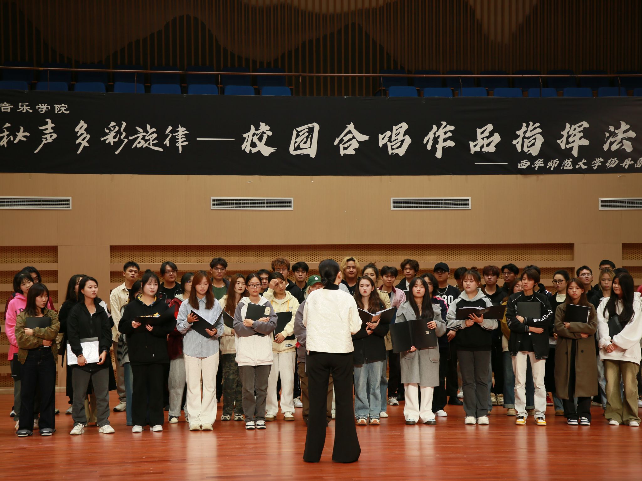 首先,杨丹教授为我们讲解了校园合唱作品指挥的要领,让同学们更加理解指挥的基本方法。