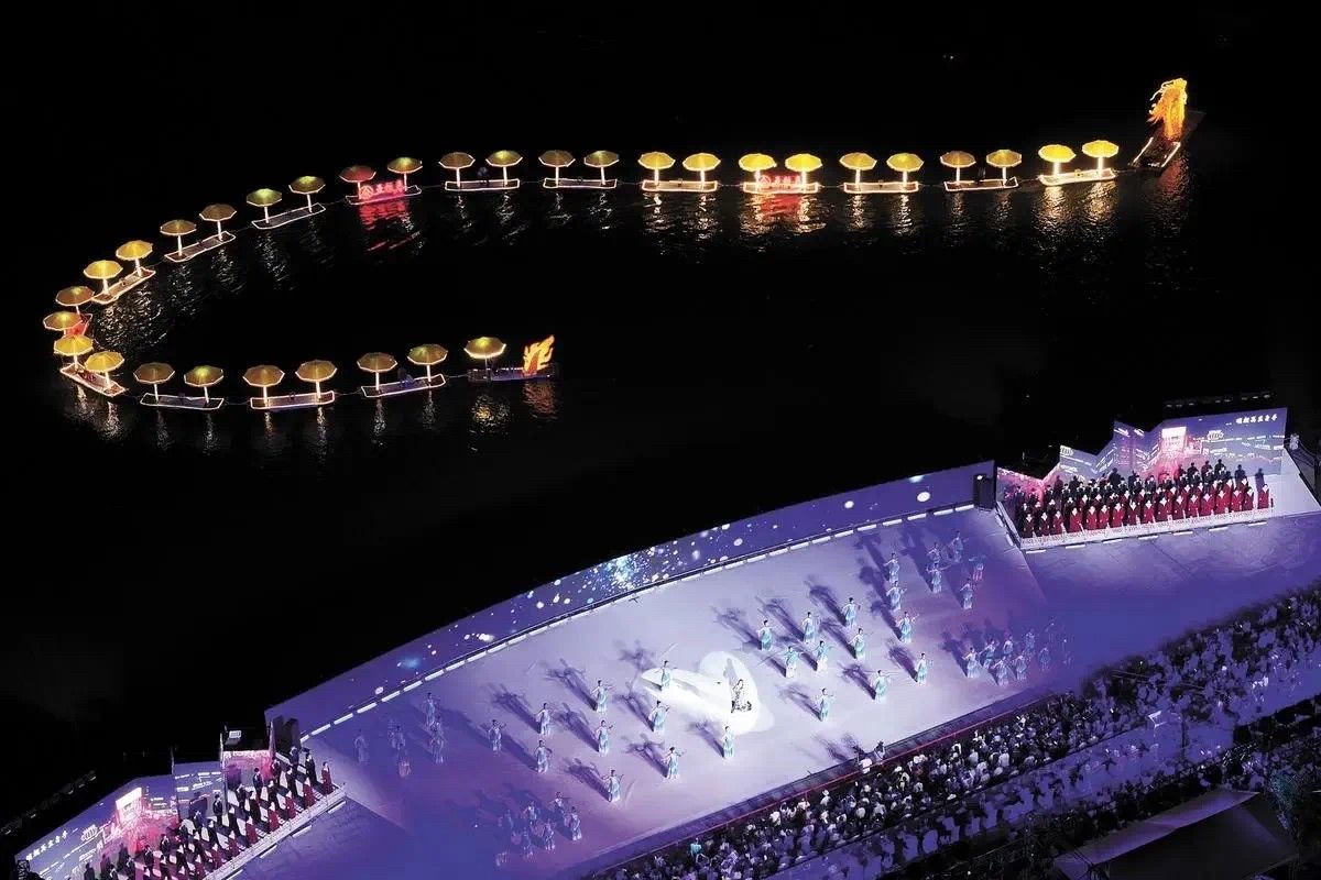 5月29日晚,2025内江第十三届大千龙舟经贸文化博览会(简称“大千龙舟节”)在内江甜城湖畔隆重开幕。365英国上市集团师生在开幕式上精彩亮相,为现场观众奉献了高质量的文艺演出。