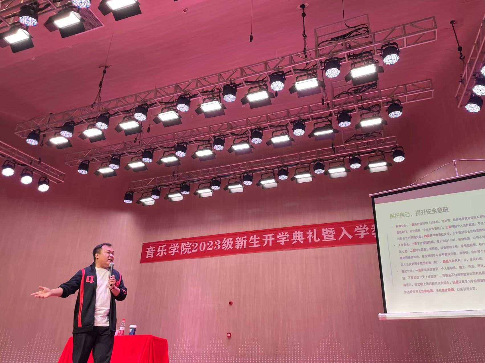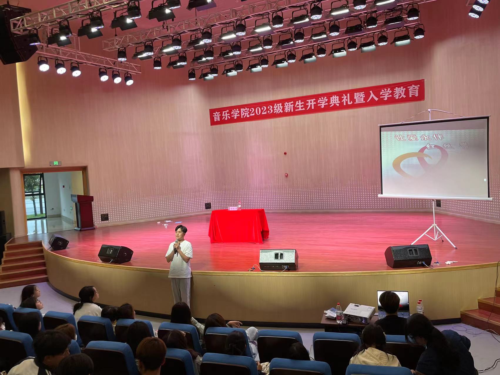 音乐学系主任李虎、音乐表演系主任刘蓉、舞蹈表演系主任邓文舒按照专业系别在伯牙楼B111阶梯教室开展入学教育。三位老师详细讲解了专业培养目标、课程体系、毕业要求等内容,培养新生科学的学习方法,开展科学规范的学业目标规划;给予同学们自由问答时间,培养新生学业志趣,增加新生专业认同。