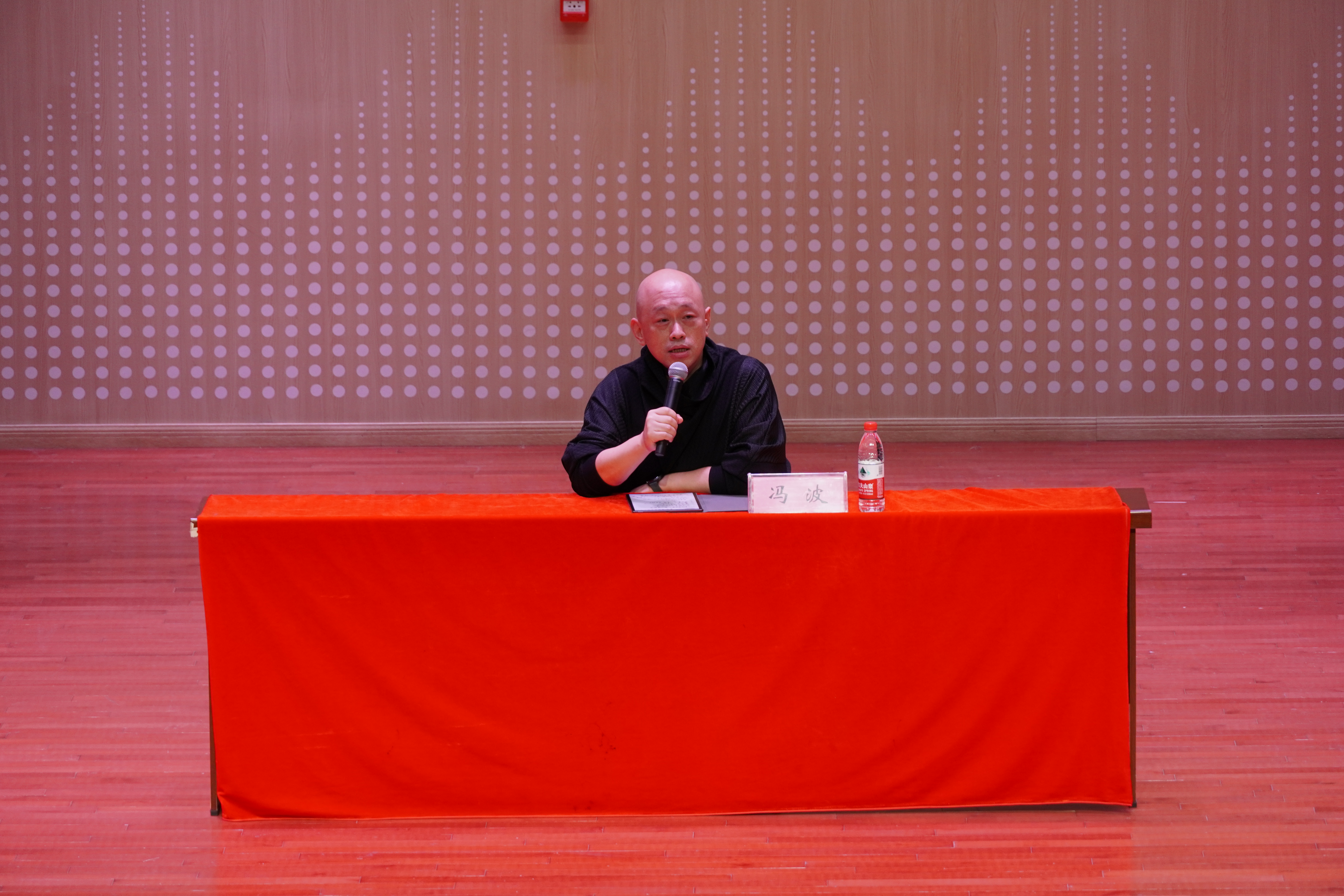 副经理冯波讲解由于音乐与舞蹈专业性质的不同,选择的学习方法也就不同;强调了同学们在校期间参与舞台实践的重要性,要理论与实践相结合,同时需自我随时关注自己的学科学分。