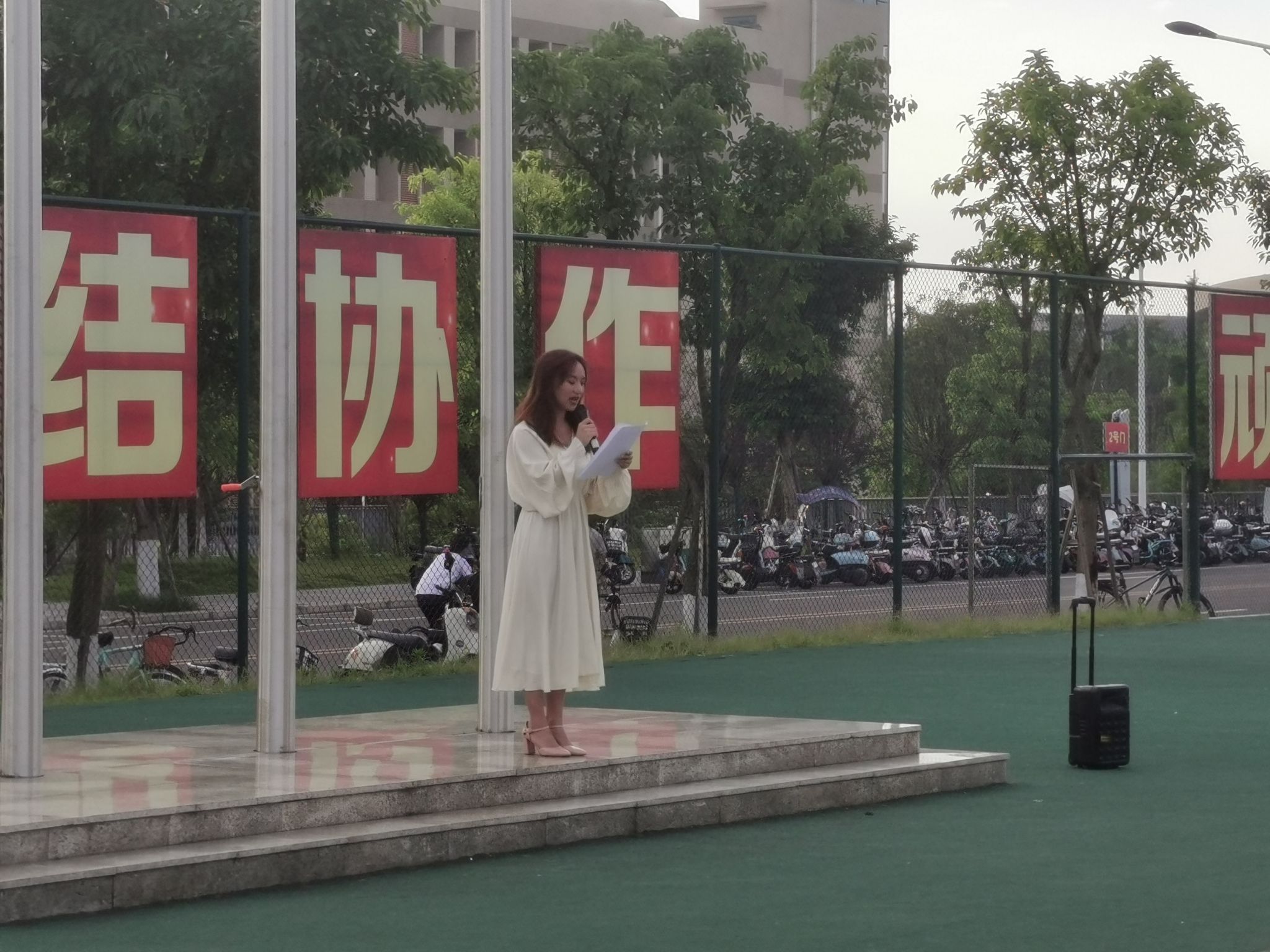 2020级2班的胡文花同学作为员工代表在国旗下发言。她表示,作为新时代的青年学子,不仅要学好专业知识,更要牢记历史使命,坚定理想信念,将个人的发展与国家的前途命运紧密相连。