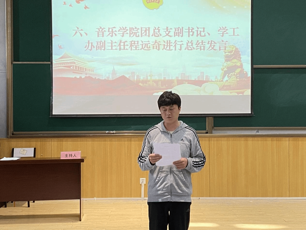 会议伊始,团总支员工会全体人员奏唱团歌。会上,团总支副书记(员工)张佳伟介绍大会流程和内容。随后,团总支员工会主席团成员唐聪和各部门负责人向全体与会人员详细介绍了员工会过去一年的工作内容和取得的成果。从各个方面总结了员工会在思想政治教育、服务团员、组织活动、社会实践等方面所取得的突出成绩和优秀经验。他们从加强员工会内部建设、提高各部门的工作效率、创新活动形式等方面都介绍了未来工作计划和思路。