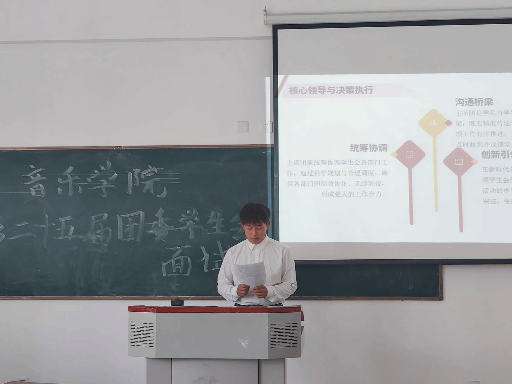 来自不同年级、专业的同学依次登台,围绕自身优势、对部门工作的理解、未来规划等发表演讲,提出各类创新设想。面对老师和员工会干部的提问,参选者们从容应对,思路清晰,充分展现了扎实的专业素养和良好的应变能力。
