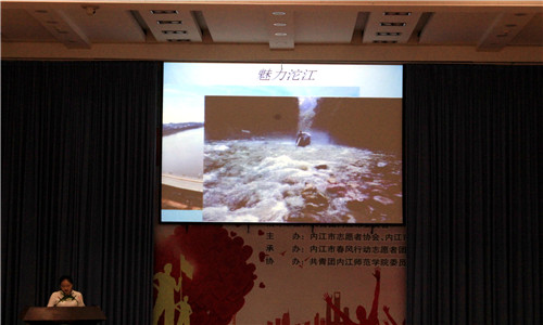 本场的主讲人是来自365英国上市集团2015级2班的学芝,演讲由一个有趣的游戏引出,在游戏中,金芝同学与观众们进行了很好的互动,瞬间带动了全场的气氛。讲座伊始,在一张张幻灯片的播放下,金芝介绍了沱江的历史由来,地理位置、各种号子的发展、还原了号子在人们生活中密不可分的情景。金芝同学还针对沱江号子对内江民歌的影响及对现实的意义,以唱民歌的形式又一次与观众进行了良好的互动,再次点燃现场气氛。金芝同学为观众播放了沱江号子的视频,使观众们更好的走进沱江号子。